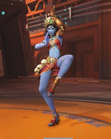 It’s just a game, a video game! Symmetra is just an inspired creation, with extremely vague Indian designs and postures. The so called Devi posture to me looks like a hybrid posture that combine Kung Pu and the Nataraja pose!
