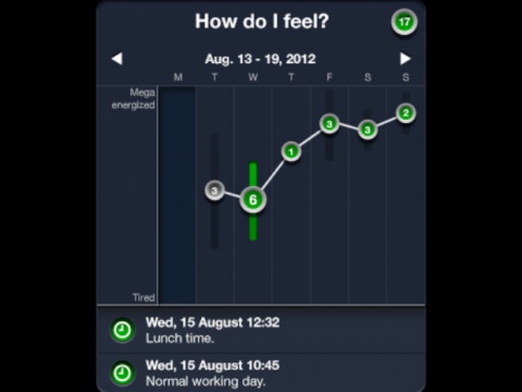 Sliders allows you to track how you feel about your wellbeing, energy levels, sleep etc, using questions you can set yourself and simple sliders to input the answers. It then creates graphs that give you some insight into your highs and lows.