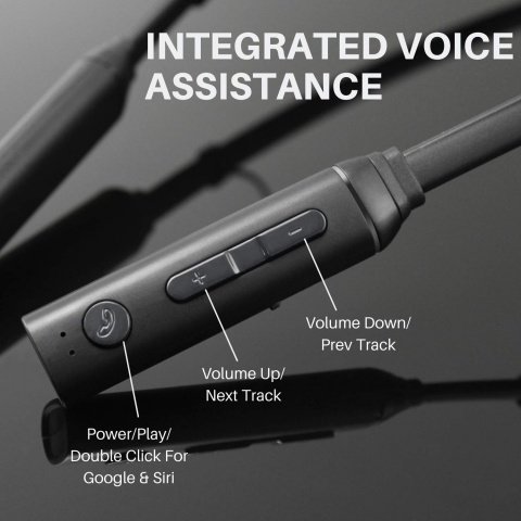 Fire-Boltt Echo 1000 Neckband in Ear Bluetooth Earphones Hearable with Explosive Sound, Google & Siri Assistance, IPX4 Waterproof with Mic (Black)