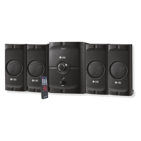 The U&i Surround Series (UiBS-5580) is a 4.1-channel multimedia speaker system that will make movie-watching sessions more immersive with its front and rear stereo channel outputs. The 60-watt system also comprises a subwoofer that outputs the low rumbles, thumps and punchy bass lines. This unit can be connected to a television or a personal computer to enjoy movies or play games in surround sound. Users can also tune into FM radio to listen to their favorite channels, connect an MP3 player via its AUX input or plug in a USB flash drive to listen to music directly from the external storage. A remote control is also included with the system for greater convenience.